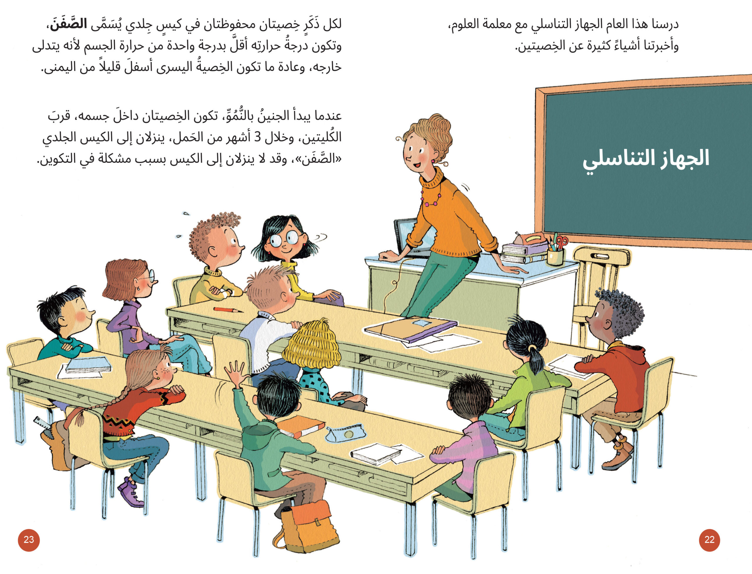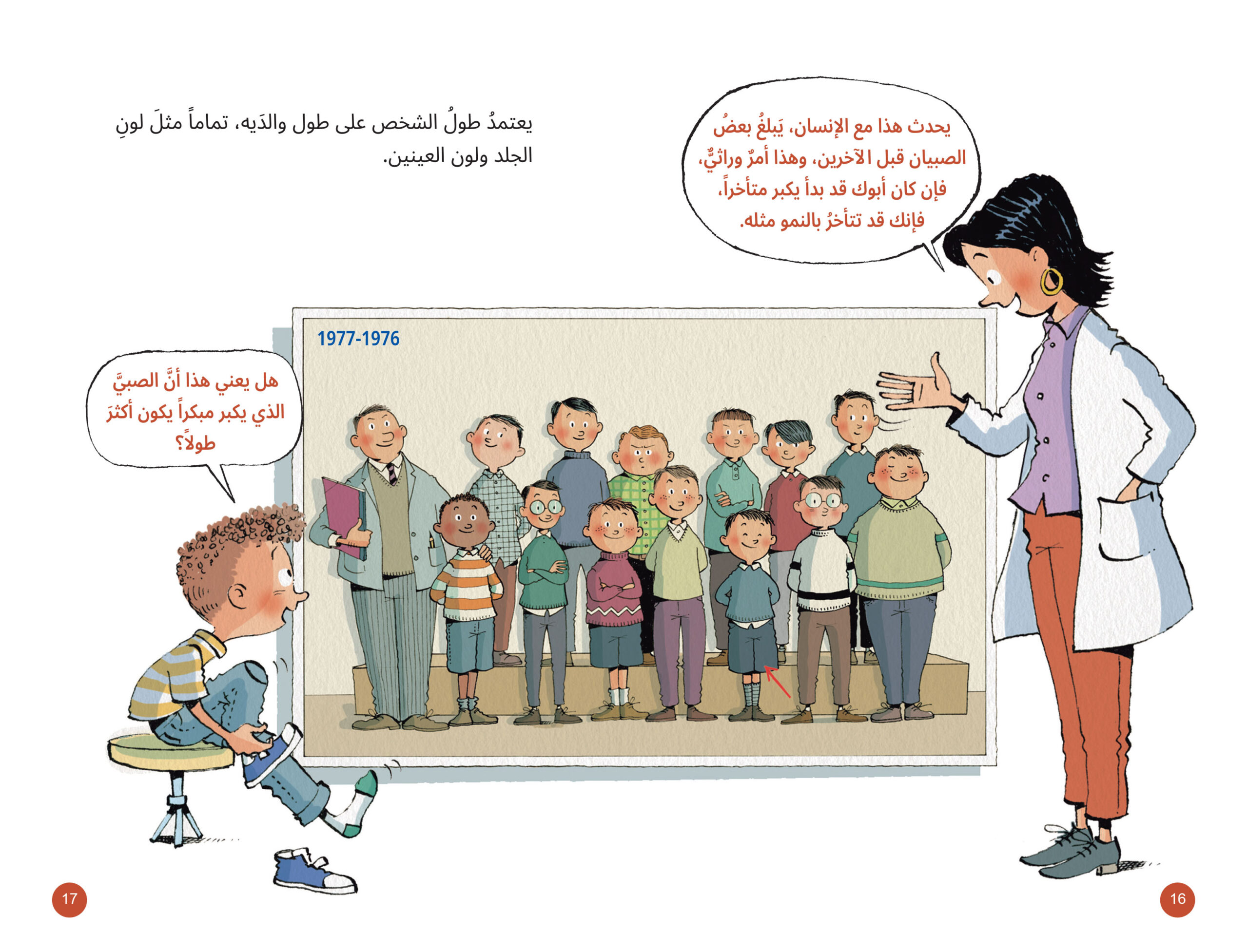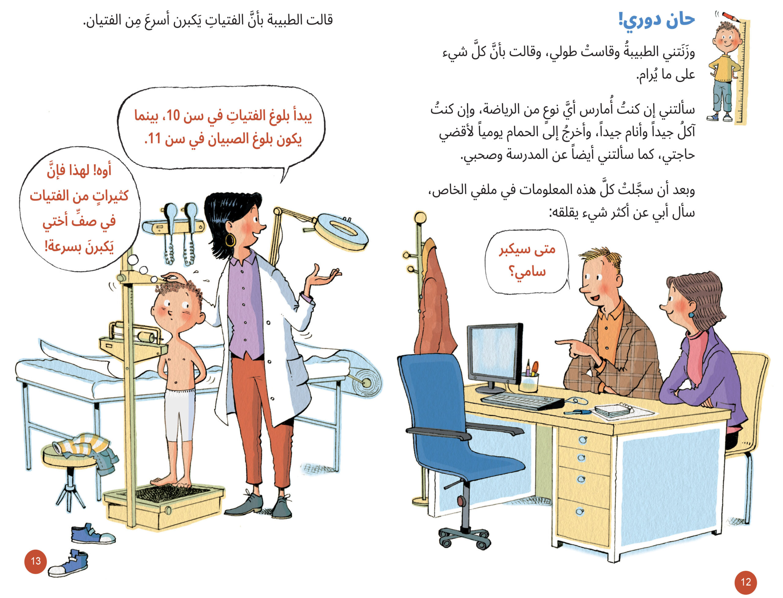 سوف نكتشف معه التغييرات التي تطرأ على جسمه خلال عملية البلوغ مثل النمو، الشعر، تغير في الصوت وغيرها.