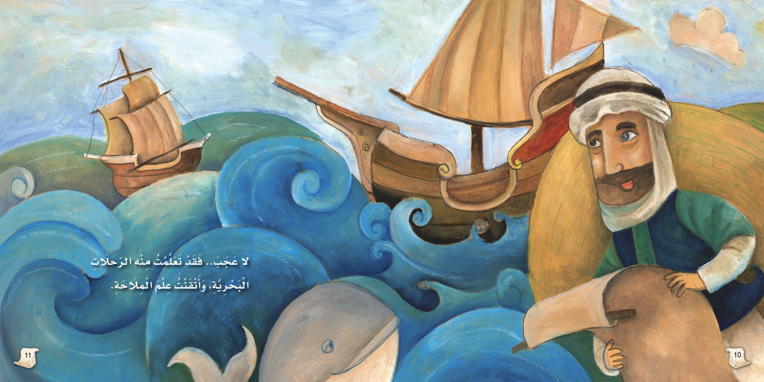 نتعلّم كيف استخدم النجوم والبوصلة لتوجيه السفن، وكيف ألّف كتبًا بحرية ما زالت تُدهش العلماء حتى اليوم، مثل كتابه “الفوائد في أصول علم البحر والقواعد”.