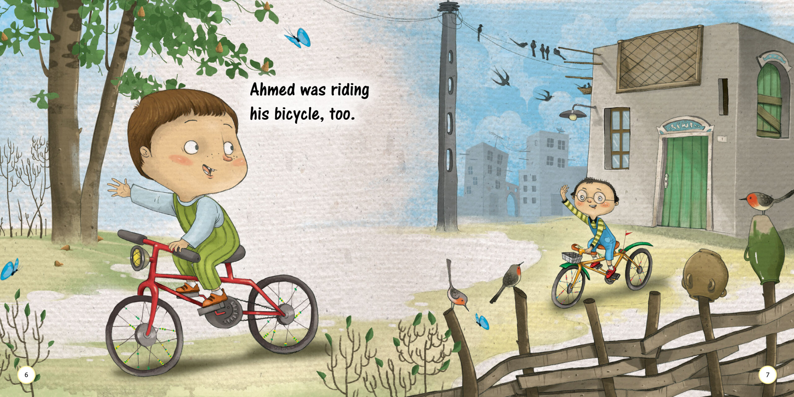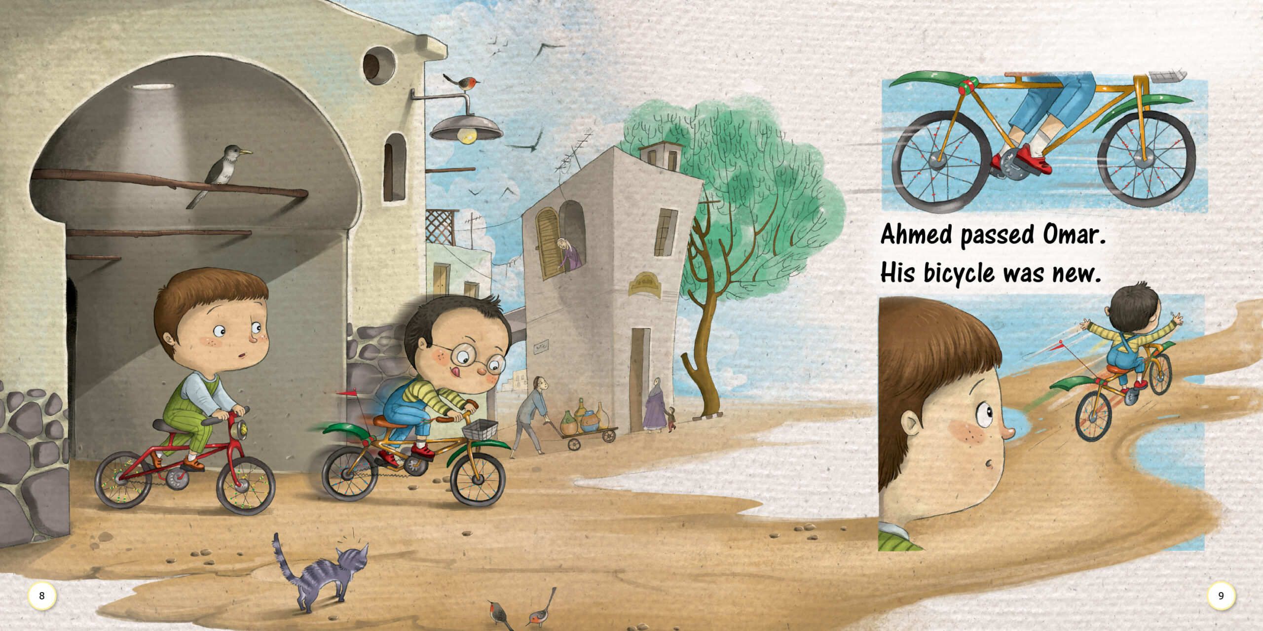 Omar and Ahmad were riding their bicycles. Ahmad thought he could run faster, but then he had an accident. What happened next?